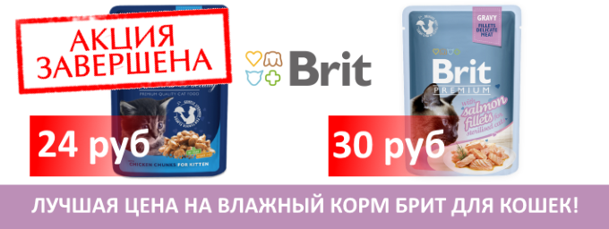 АКЦИЯ НА ВЛАЖНЫЙ КОРМ БРИТ ДЛЯ КОШЕК!