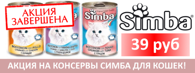 АКЦИЯ НА КОНСЕРВЫ СИМБА ДЛЯ КОШЕК!